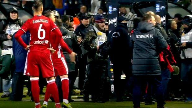 O Ολυμπιακός αποσύρθηκε στα αποδυτήρια ύστερα από αντικείμενο που χτύπησε τον τεχνικό του, Όσκαρ Γκαρθία, πριν από την προγραμματισμένη έναρξη του μεγάλου ντέρμπι της 23ης αγωνιστικής της Super League Σουρωτή.