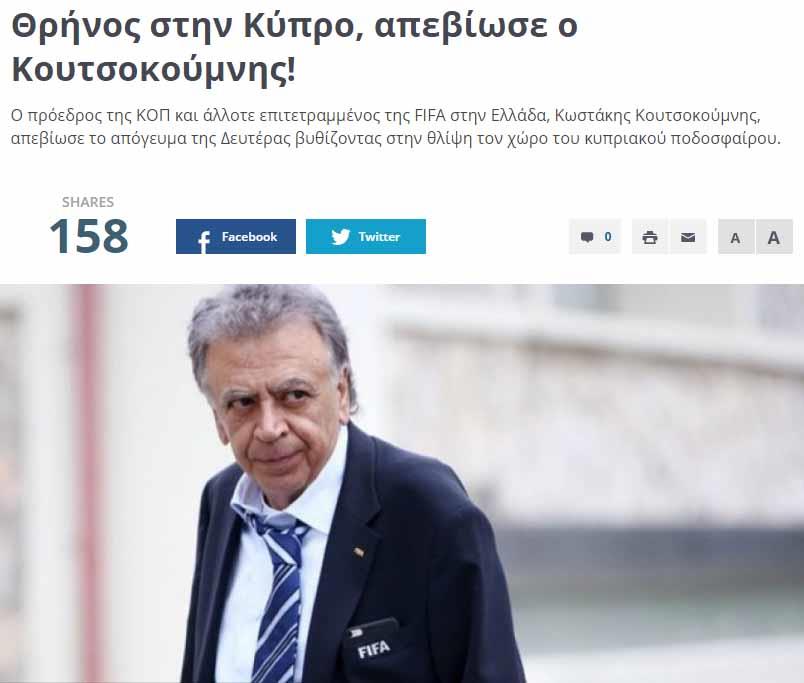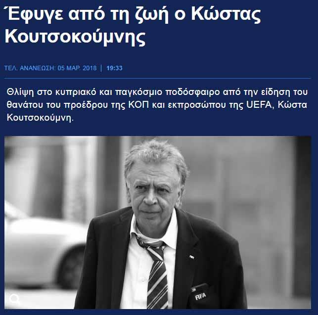 Ο Κουτσοκούμνης είχε επιλεγεί να εκπροσωπεί την UEFA στο Συμβούλιο της FIFA τα επόμενα τέσσερα χρόνια στη θέση του Μάριου Λευκαρίτη.