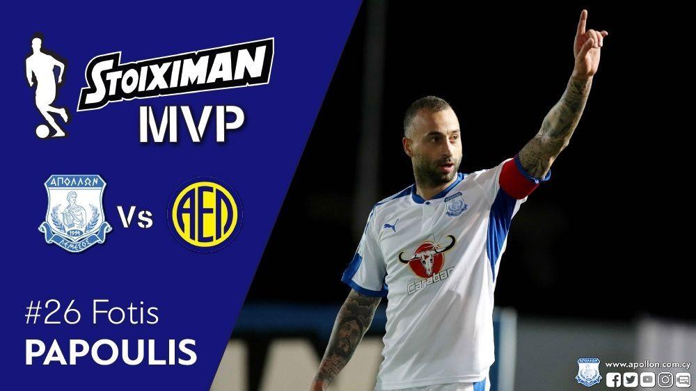 Ο Φώτης Παπουλής ήταν ο Stoiximan MVP του Απόλλωνα στο εντός έδρας παιχνίδι πρωταθλήματος με αντίπαλο την ΑΕΛ (5-1) στο Τσίρειο Στάδιο.