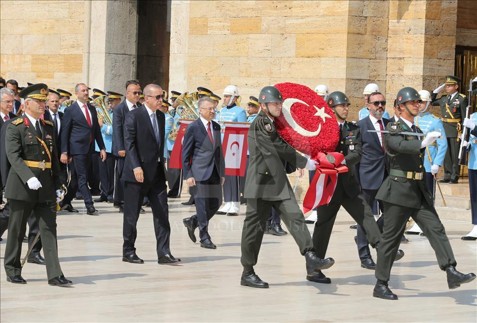 Τον Τούρκο Πρόεδρο συνόδευαν στο Μαυσωλείο ο αντιπρόεδρος της κυβέρνησης Φουάτ Οκτάι, ο πρόεδρος της τουρκικής εθνοσυνέλευσης Μπιναλί Γιλντιρίμ, μέλη του υπουργικού συμβουλίου και αρχηγοί κομμάτων.
