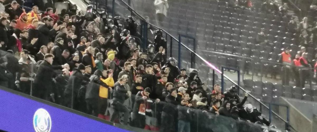 Η Παρί με γκολ των Ικάρντι και Σαράμπια μέσα σε ένα τρίλεπτο (33’ και 35’) προηγήθηκε με 2-0 της Γαλατάσαραϊ, αλλά το θέαμα στον αγωνιστικό χώρο επισκιάστηκε από τις συμπλοκές οπαδών των δύο ομάδων στις κερκίδες του «Παρκ Ντε Πρενς».