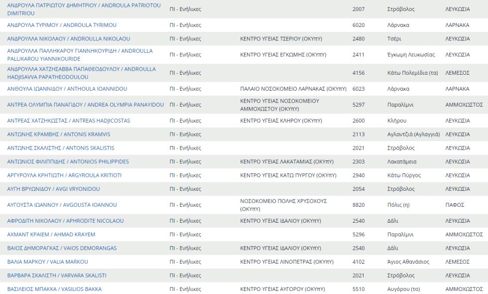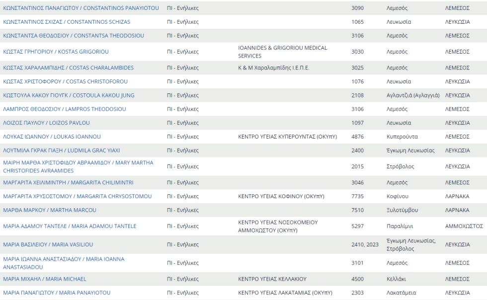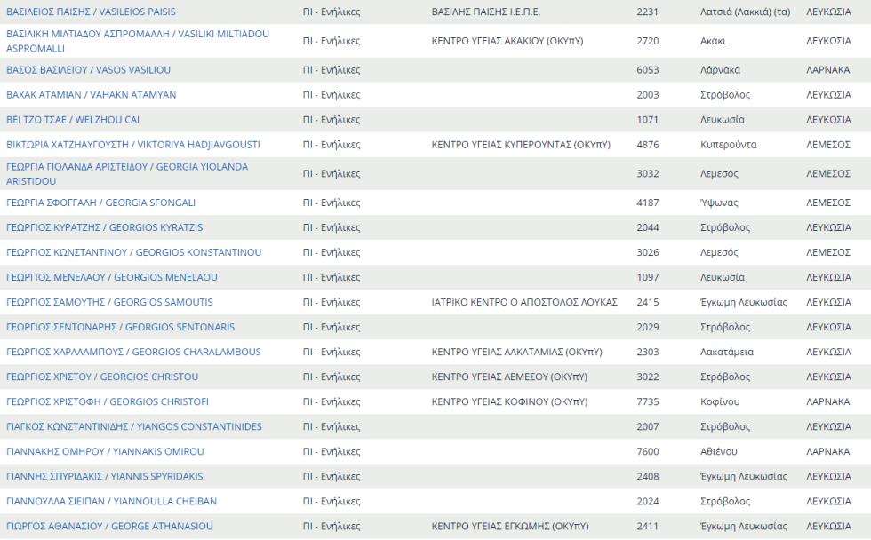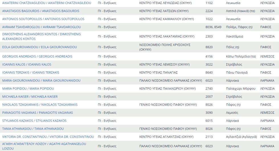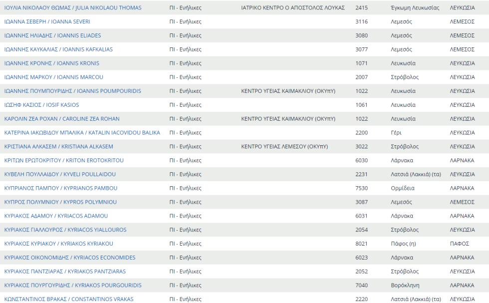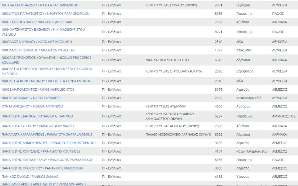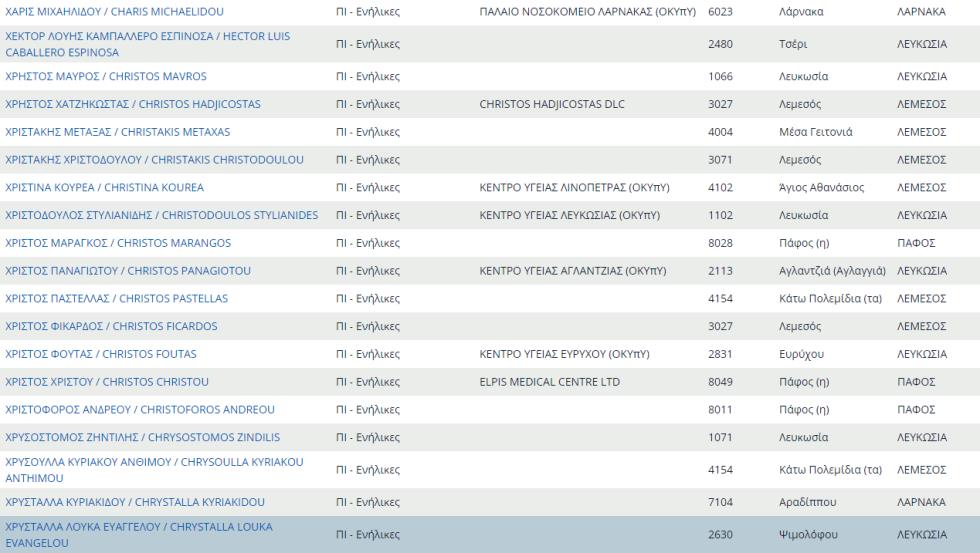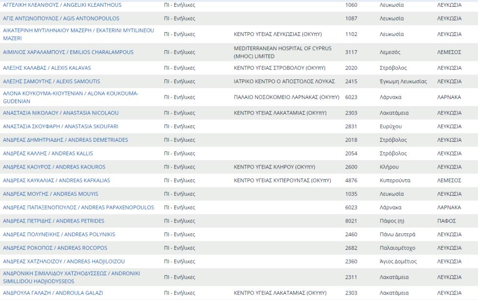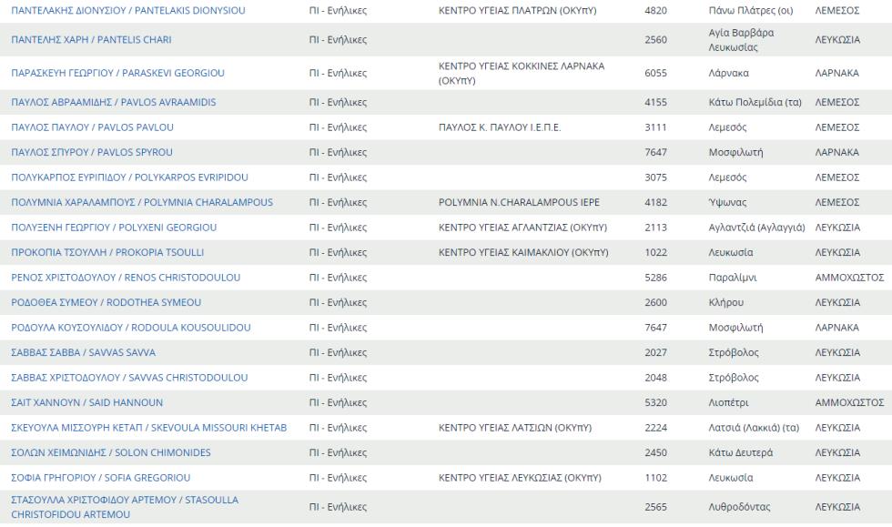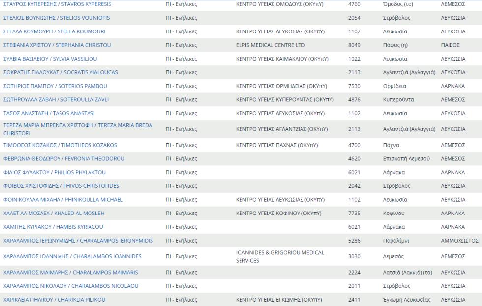 Δείτε εδώ ολόκληρο τον κατάλογο με τους προσωπικούς γιατρούς του ΓΕΣΥ
