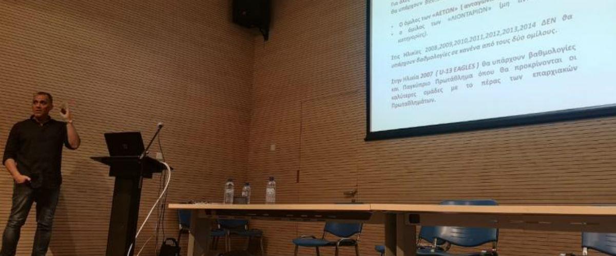 Παρουσιάστηκαν τα Πρωταθλήματα που θα διοργανωθούν την επόμενη αγωνιστική περίοδο και έγινε ανταλλαγή απόψεων, με στόχο τη συνεχή αναβάθμιση των Πρωταθλημάτων Grassroots τα οποία αποτελούν τη μεγαλύτερη διοργάνωση της Ομοσπονδίας, από πλευράς μαζικότητας συμμετοχής.