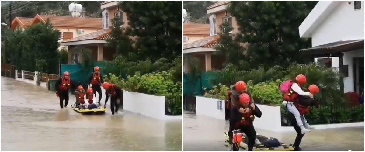 Σε βίντεο που ανήρτησε η Πυροσβεστική Υπηρεσία, καταγράφει καρέ-καρέ την επιχείρηση διάσωσης δέκα ατόμων από τις οικίες τους στην Καλαβασό.