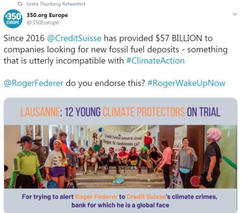 Η εν λόγω τράπεζα που στηρίζει την εξόρυξη πετρελαίου έχει ως πρεσβευτή της τον Ελβετό τενίστα κάτι που έχει προκαλέψει αντιδράσεις.
