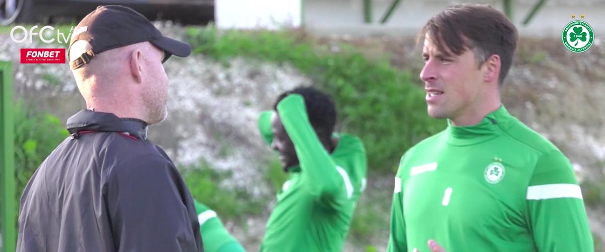 Οι ποδοσφαιριστές των πρασίνων επιδόθηκαν σε ασκήσεις με μπάλα, με τον Χένινγκ Μπεργκ να παρακολουθεί τα πεπραγμένα και να έχει μια σύντομη κουβέντα με κάποιους ποδοσφαιριστές.