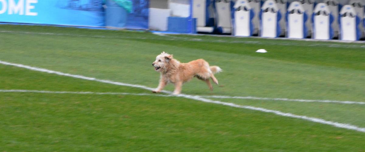 Λίγα λεπτά πριν τη σέντρα της αναμέτρησης ωστόσο, ένα σκυλάκι μπήκε στον αγωνιστικό χώρο, κάνοντας τη βόλτα του και κλέβοντας συνάμα τα βλέμματα.