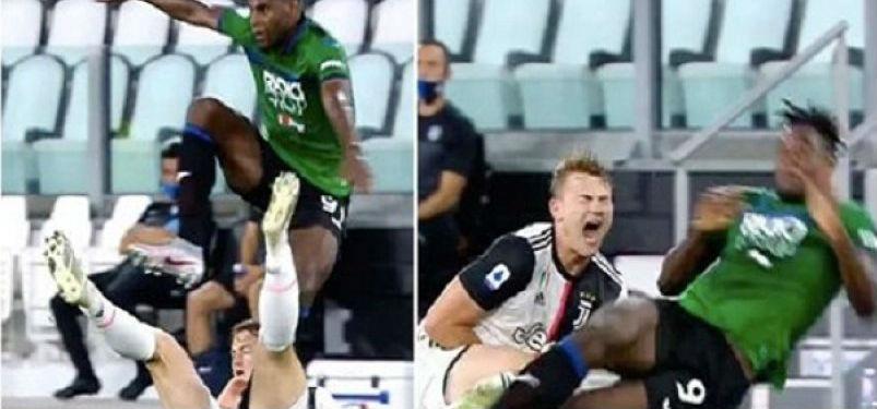 Ο Ολλανδός στόπερ της Γιουβέντους στην προσπάθειά του να κάνει τάκλιν στον σκόρερ του ενός από τα δυο γκολ της Αταλάντα το βράδυ του Σαββάτου στην ισοπαλία (2-2) στο Τορίνο, βίωσε τον χειρότερο πόνο...