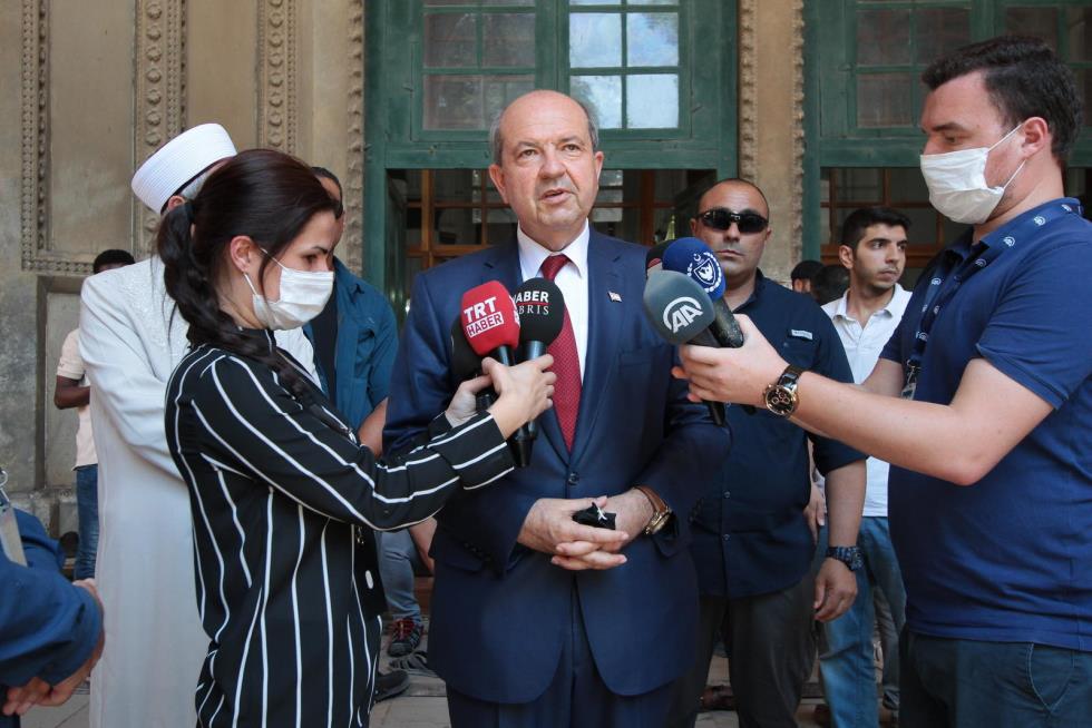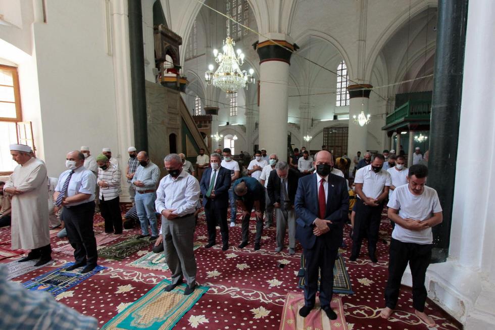 Αυτή τη φορά, την ώρα που ο Ταγίπ Ερντογάν βρισκόταν στον Ναό της Αγίας Σοφίας στην Κωνσταντινούπολη και συμμετείχε στην πρώτη προσευχή, μετά την απόφαση του για να μετατραπεί σε τζαμί, ο Ερσίν Τατάρ βρισκόταν στον συλημένο καθεδρικό ναό της Αγίας Σοφίας στην κατεχόμενη Λευκωσία και συμμετείχε στην προσευχή της Παρασκευής.