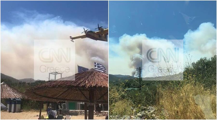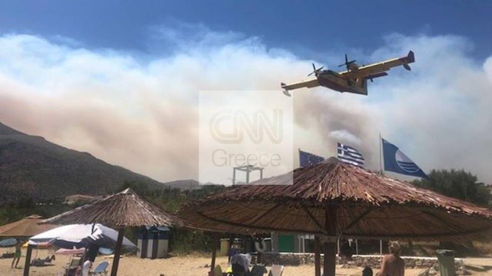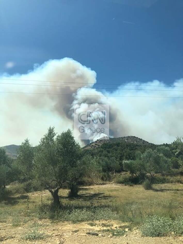 Σύμφωνα με την Πυροσβεστική, εκκενώνονται οι οικισμοί Βάχος, Γέρμα και Δροσοπηγή.