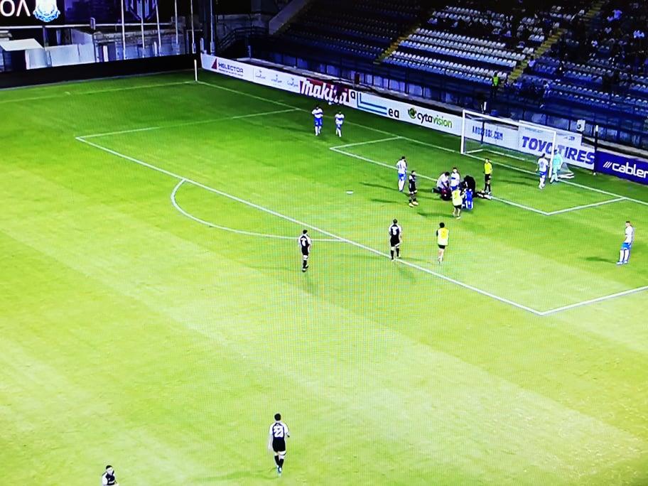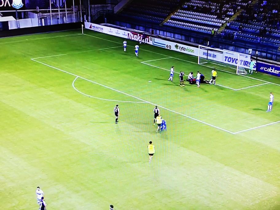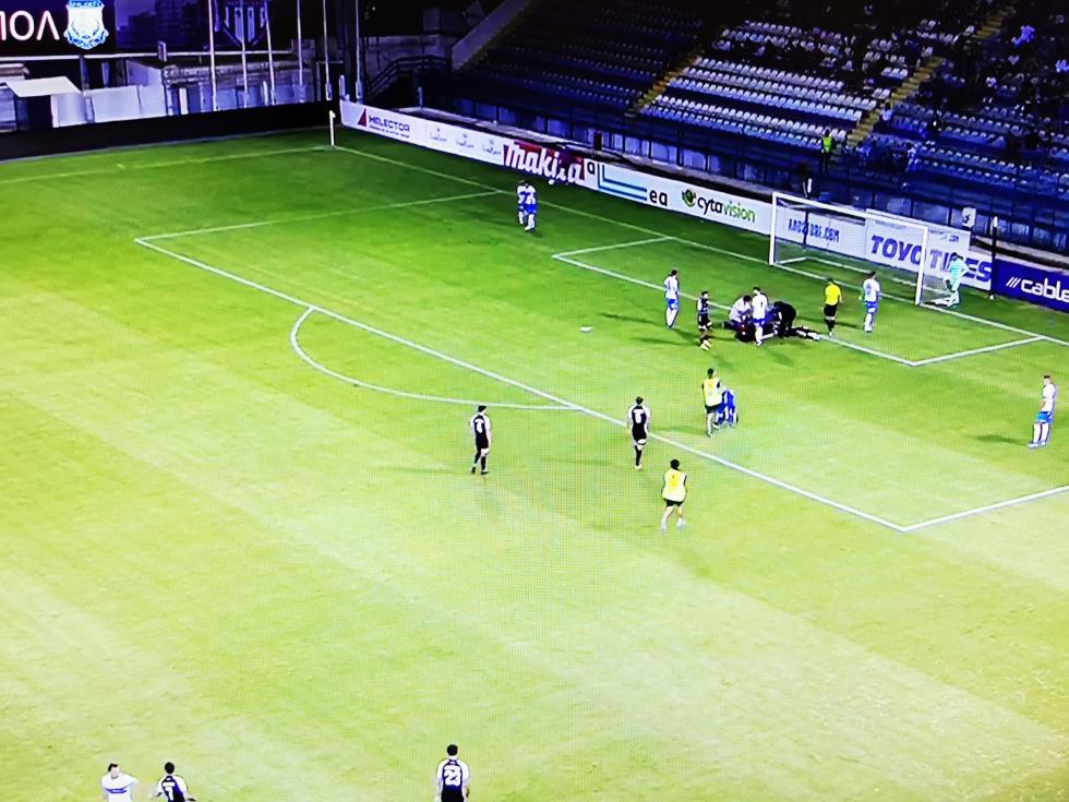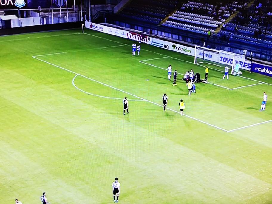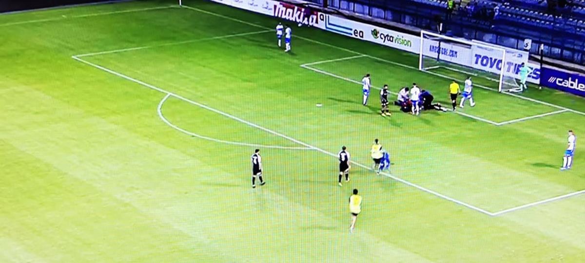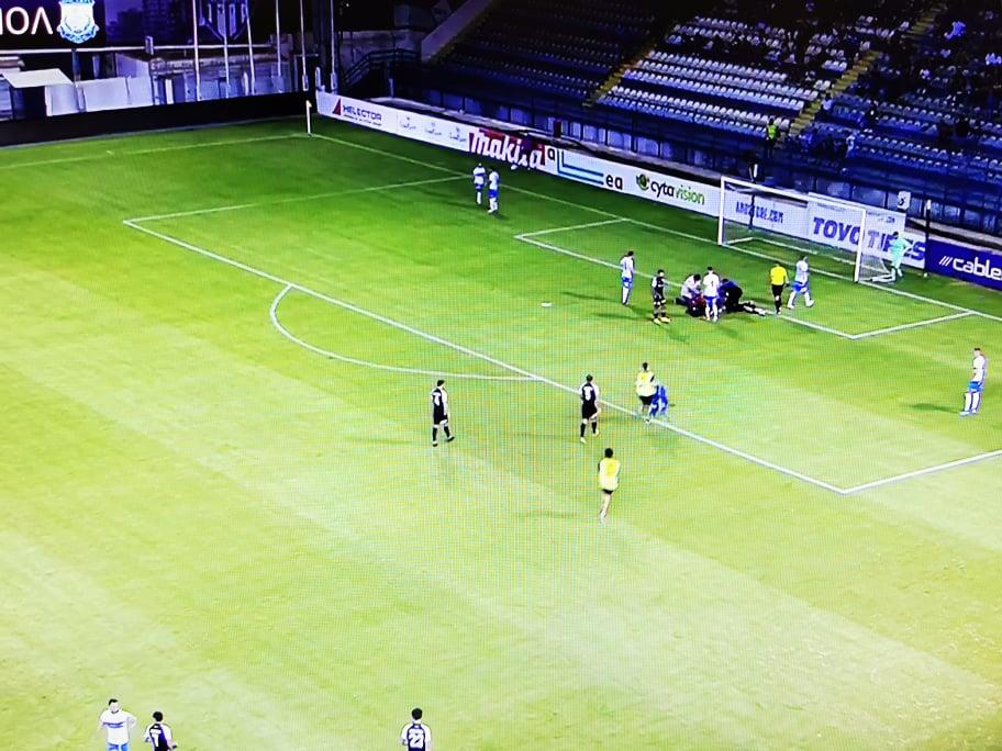 Ο Ελλαδίτης ποδοσφαιριστής της Ανόρθωσης έπιασε κεφαλιά στο 42ο λεπτό της αναμέτρησης, όμως κατά την προσγείωση του χτύπησε στο κεφάλι και σωριάστηκε στο έδαφος.