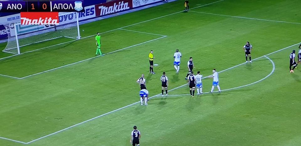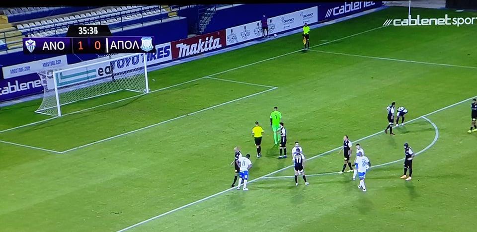 Το παιχνίδι στα ίσα έφερε ο Απόλλωνας στο 36', καθώς ο Μπένσοπ ευστόχησε από τα ένδεκα βήματα και έκανε το 1-1, στο ντέρμπι με την Ανόρθωση, ενώ λίγα δευτερόλεπτα πριν την ανάπαυλα η ομάδα της Λεμεσού πήρε κεφάλι στο σκορ με ωραίο σουτ του Πίττα.