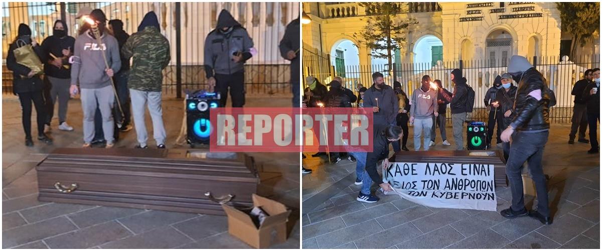 Εντύπωση προκάλεσε μάλιστα, το φέρετρο το οποίο κουβάλησαν οι πολίτες στο σημείο, για να στείλουν τα δικά τους μηνύματα.