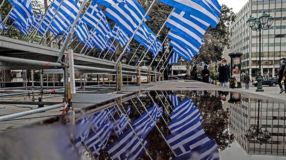 Ήδη η πλατεία Συντάγματος έχει σημαιοστολιστεί με 200 γαλανόλευκες, σε μια εντυπωσιακή σύνθεση, πάνω σε ξεχωριστή εξέδρα. Με την φροντίδα του Δήμου Αθηναίων η κεντρική πλατεία της πόλης έχει διακοσμηθεί και φωταγωγηθεί ειδικά για την εξαιρετική περίσταση.
