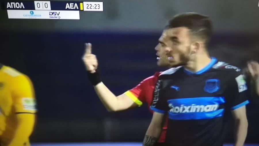 Ένα φάουλ του Ντάβορ Ζντραβκόφσκι πάνω στον Ιωάννη Πίττα, στο 23ο λεπτό του ντέρμπι της Λεμεσού, εξόργισε τον ποδοσφαιριστή του Απόλλωνα, ο οποίος σηκώθηκε και διαμαρτυρήθηκε έντονα στον διαιτητή Λούκα Σωτηρίου.