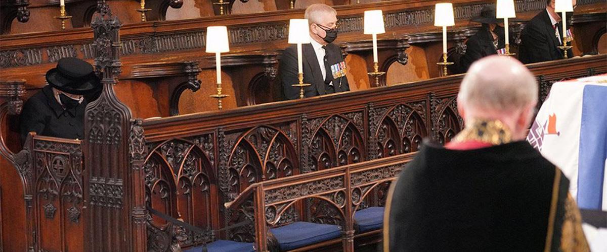 Η κηδεία του πρίγκιπα Φίλιππου ήταν μια κηδεία εντελώς διαφορετική από τις κηδείες άλλων γαλαζοαίματων στο Ηνωμένο Βασίλειο, όχι μόνο λόγω των περιοριστικών μέτρων της πανδημίας, αλλά και επειδή ο Φίλιππος είχε εκφράσει την επιθυμία στην κηδεία του να μη γίνει «φασαρία» και να προσκληθούν μέλη της οικογένειάς του από τη Γερμανία, όπου είχαν παντρευτεί οι αδελφές του. Οι προσκεκλημένοι ήταν μόνο 30, όλοι φορούσαν μάσκες και κρατούσαν τις αποστάσεις σύμφωνα με τα μέτρα για τον κορωνοϊό ενώ απαγορεύτηκε η είσοδος στο κοινό. Στην είσοδο του ναού το φέρετρο υποδέχθηκε ο Αρχιεπίσκοπος του Καντέρμπουρι, Τζάστιν Ουέλμπι και ο Επίσκοπος του Ουίνδσορ, Ντέιβιντ Τζον Κόνερ.