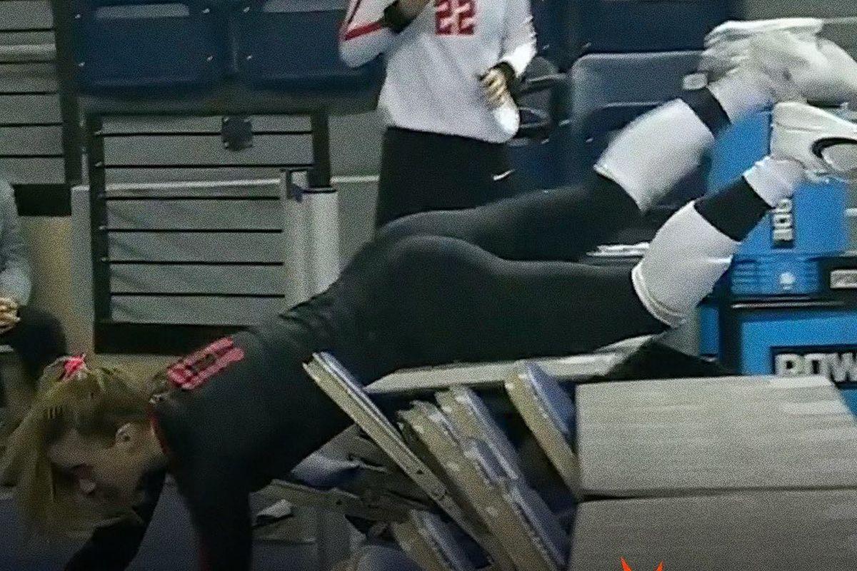 Με τρομερή αυτοθυσία η νεαρή λίμπερο των Κούγκαρς έτρεξε για μια χαμένη μπάλα εκτός ορίων, πέρασε με εντυπωσιακό άλμα πάνω από τραπέζια και στη συνέχεια πρόλαβε να επιστρέψει για να σώσει ακόμη μια άμυνα, συμβάλλοντας εν τέλει στον πόντο που κέρδισε η ομάδα της με μπλοκ.