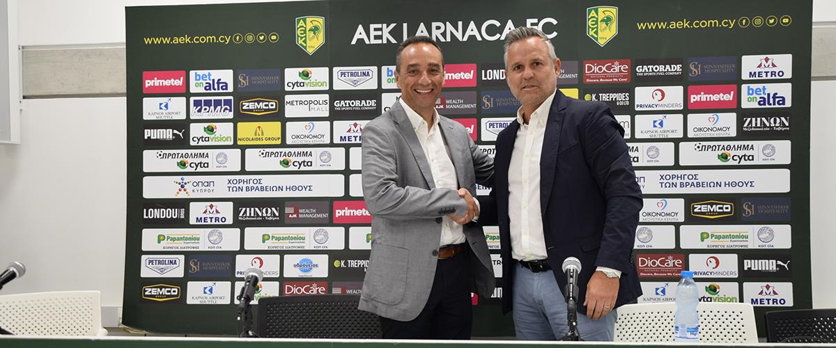 Δημοσιογραφική διάσκεψη πραγματοποιήθηκε σήμερα, για την παρουσίαση του νέου προπονητή της ΑΕΚ, Jose Luis Oltra, από τον τεχνικό διευθυντή Xavi Roca.