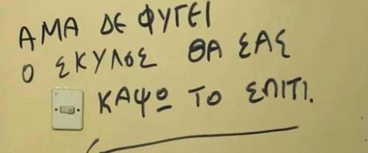 Ενα εξοργιστικό περιστατικό σημειώθηκε στη Θεσσαλονίκη, με κάποιον να γράφει απειλητικό μήνυμα εναντίον κοπέλας στον τοίχο έξω από την είσοδο του σπιτιού της.