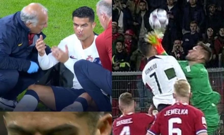 Cristiano Ronaldo kaleci Vaclik ile çarpıştı. Ronaldo'nun burnu açıldı.