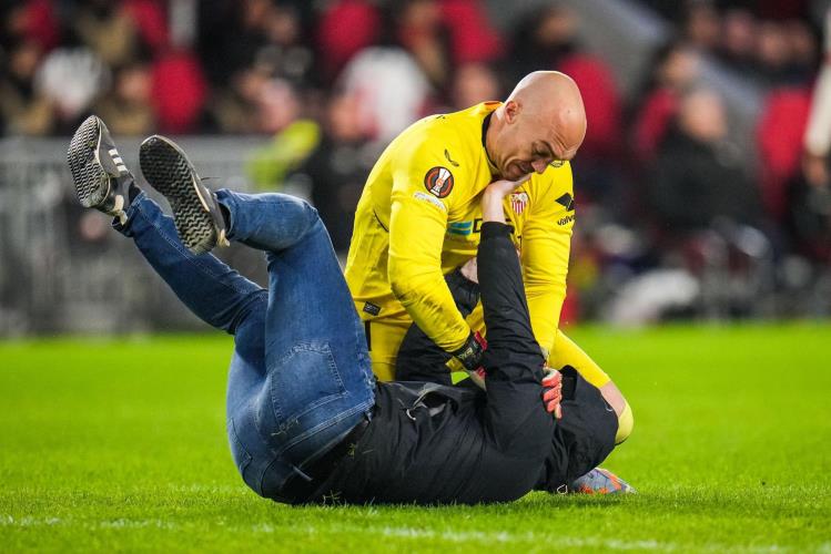 Συγκεκριμένα, ένας οπαδός των Ολλανδών εισέβαλε στον αγωνιστικό χώρο και επιτέθηκε στον τερματοφύλακα των Ανδαλουσιανών, Μάρκο Ντμίτροβιτς.
