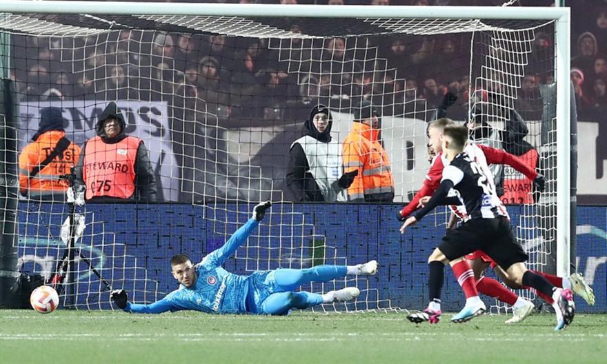 Αρκετές φορές η εκκίνηση κρίνει ένα ματς, πολλές φορές «δείχνει» πολλά. Εν προκειμένω, ο ΠΑΟΚ μπήκε φουριόζος στην αναμέτρηση, παίζοντας στοχευμένα στα… κόκκινα, φανερώνοντας ότι είχε επενδύσει πολλά σε αυτό το διάστημα του αγώνα. Αποτέλεσμα της υπεροχής του ήταν αρχικά ένα δοκάρι στα 18’’ μετά το σουτ του Νάρεϊ από πλάγια θέση, με τον Πασχαλάκη να έχει προστατέψει την κλειστή του γωνία. Στο 1:20 ακολούθησε πιο κλασική ευκαιρία, με τον Νάρεϊ να κάνει το γύρισμα και τον Πασχαλάκη να έχει απάντηση στο σουτ του αμαρκάριστου Α. Ζίβκοβιτς στην κίνηση.