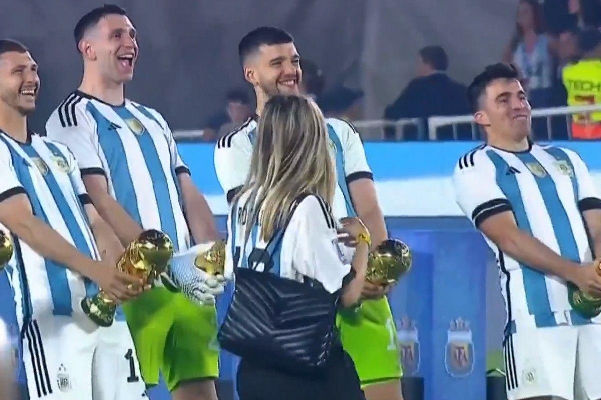 Για μία ακόμα φορά ο Εμιλιάνο Μαρτίνες επανέλαβε τον πανηγυρισμό που είχε κάνει κατά τη διάρκεια της απονομής με τον τίτλο του καλύτερου τερματοφύλακα στο Μουντιάλ.