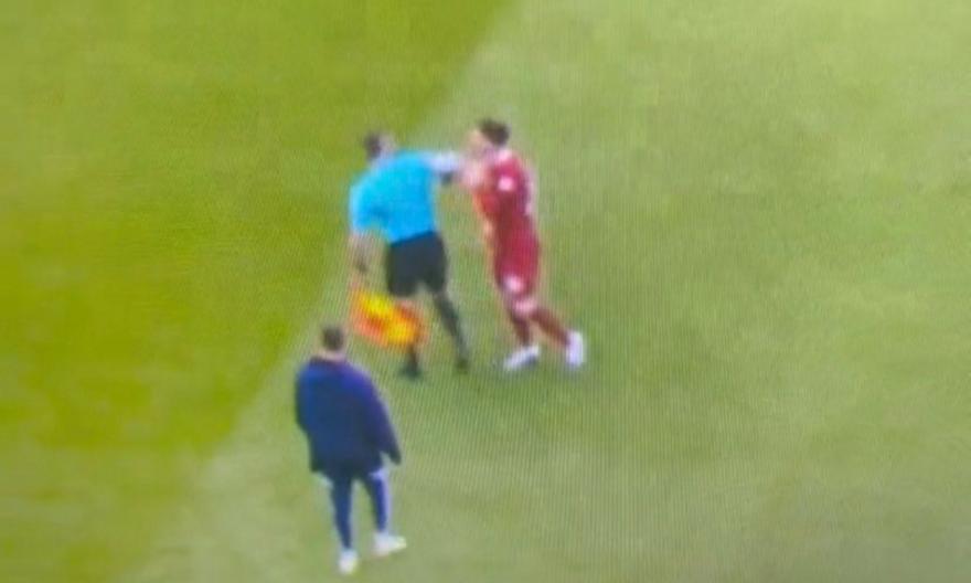 Τότε, εμφανίστηκε μπροστά του ο επόπτης με κυπριακές ρίζες, Κώστας Χατζηδάκης, ο οποίος φαίνεται πως ύψωσε τον αγκώνα του, βρίσκοντας τον αμυντικό της Λίβερπουλ στον λαιμό.