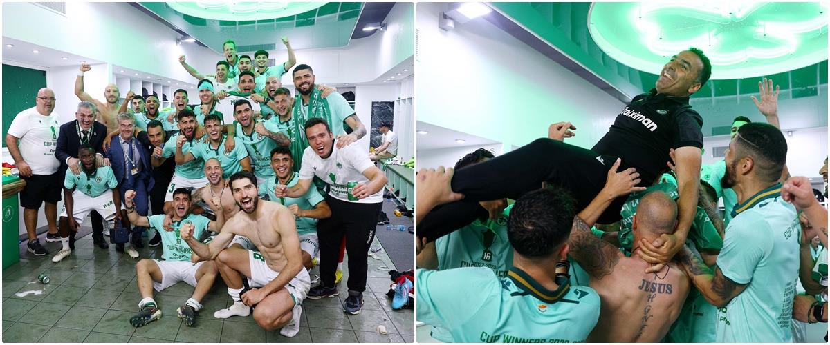 Με τη ψυχή τους πανηγύρισαν ποδοσφαιριστές και τεχνικό επιτελείο της Ομόνοιας, την κατάκτηση του κυπέλλου, μετά τη νίκη με 1-0 επί της ΑΕΛ.