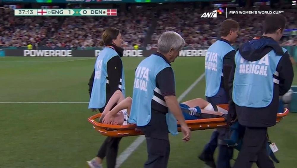 Η μέσος της Αγγλίας Κίρα Γουόλς αποχώρησε με φορείο κλαίγοντας από τον αγωνιστικό χώρο στο 38ο λεπτό κατά τη διάρκεια του αγώνα του Παγκοσμίου Κυπέλλου με τη Δανία στο Σίδνεϊ.