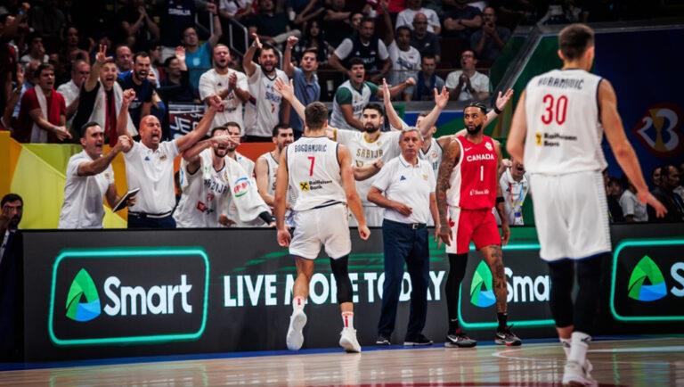 Παίζοντας για 40 λεπτά εξωπραγματικό μπάσκετ, η μεγάλη Σερβία (που αγωνίζεται χωρίς Γιόκιτς και Μίτσιτς) κέρδισε εύκολα τον Καναδά με και πήρε τεράστια πρόκριση για τον τελικό του Παγκοσμίου Κυπέλλου. Κορυφαίος του αγώνα ο Μπογκντάνοβιτς με 23 πόντους, ενώ 16 πόντους και 10 ριμπάουντ είχε ο Νίκολα Μιλουτίνοφ.