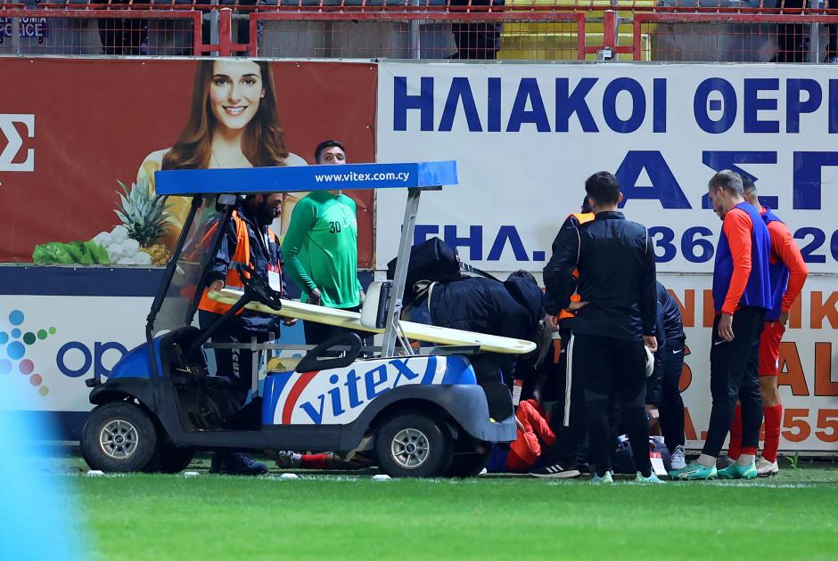 Κοντά στον ποδοσφαιριστή της, Γιώργο Παπαγεωργίου στέκεται η Νέα Σαλαμίνα, ο οποίος τραυματίστηκε ύστερα από ρίψη κροτίδας στο παιχνίδι με το ΑΠΟΕΛ.