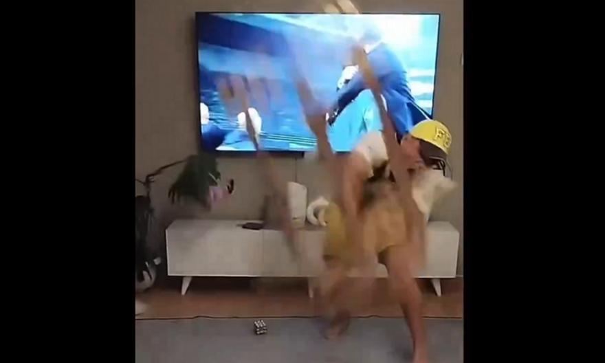 Αφού έριξε κλωτσιές σε ό,τι βρήκε μπροστά του (καρέκλες κλπ), με αποτέλεσμα να κάνει… καλοκαιρινό το σαλόνι του.
