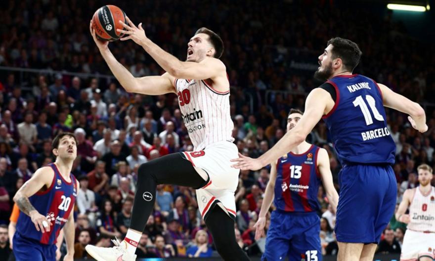 Με άμυνα που… δάγκωνε οι «ερυθρόλευκοι» είχαν το προβάδισμα σχεδόν καθ’ όλη τη διάρκεια του ματς και στο τέλος νίκησαν 77-75 την Μπαρτσελόνα, στην πρεμιέρα των Playoffs!