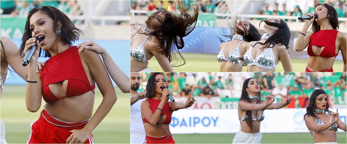 Μια ξεχωριστή νότα έδωσε στον τελικό Ομόνοια-Πάφος, η υπέρλαμπρη Έλενα Παπαναγιώτου με τα κορίτσια της.