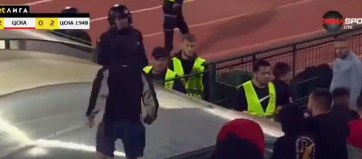 Η ΤΣΣΚΑ 1948 βρισκόταν μπροστά στο σκορ με 2-0 όταν στο 88ο λεπτό ένας χούλιγκαν της ΤΣΣΚΑ εισέβαλε στο γήπεδο κραδαίνοντας ένα ρόπαλο και εκφόβισε τους παίκτες που ήταν μπροστά του. Κατόπιν, έδωσε σύνθηκα για εισβολή και άλλων χούλιγκαν, οι οποίοι διέλυσαν τηλεοπτικό εξοπλισμό και διαφημιστικές πινακίδες και έδωσαν μάχες σώμα με σώμα με αστυνομικούς.