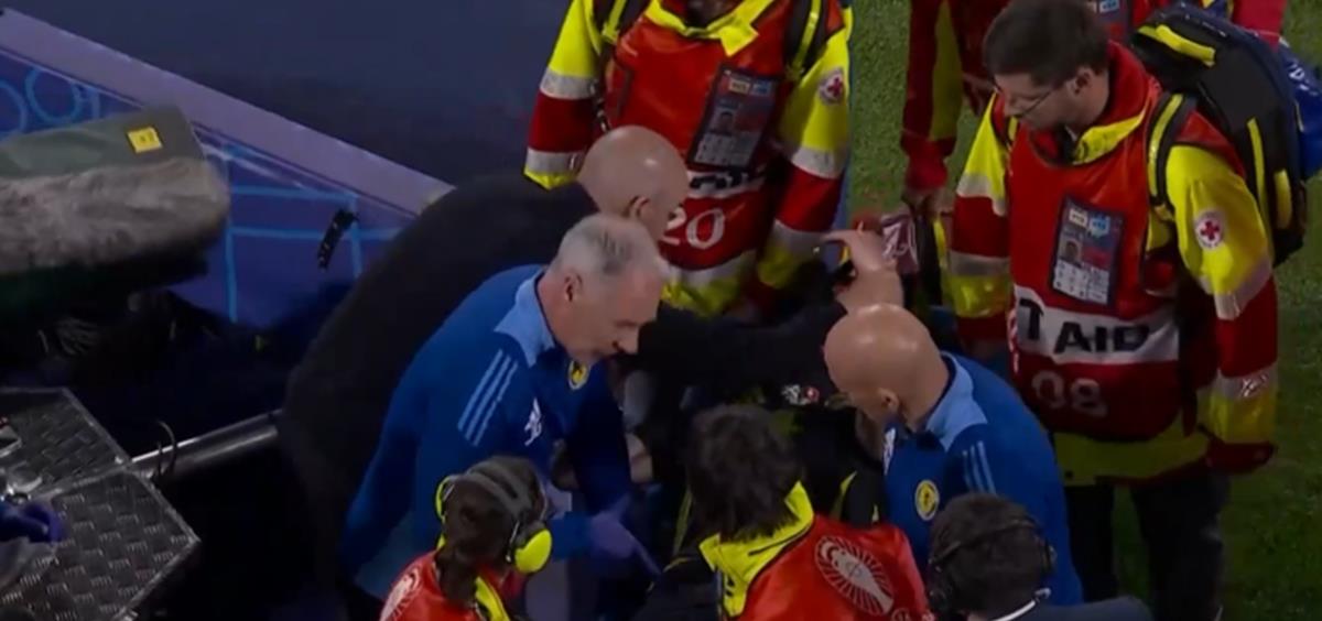 Μετά από μία μονομαχία με τον Εντόι, ο αμυντικός της Ρεάλ Σοσιεδάδ πάτησε άτσαλα το πόδι του στο έδαφος και έπεσε. Στο 61′ ο 17χρονος άσος αποχώρησε από τον αγωνιστικό χώρο με φορείο, έχοντας πόνο στο γόνατο, με τον Στιβ Κλαρκ να πηγαίνει από πάνω του, την ώρα που τον μετέφεραν προς τα αποδυτήρια.