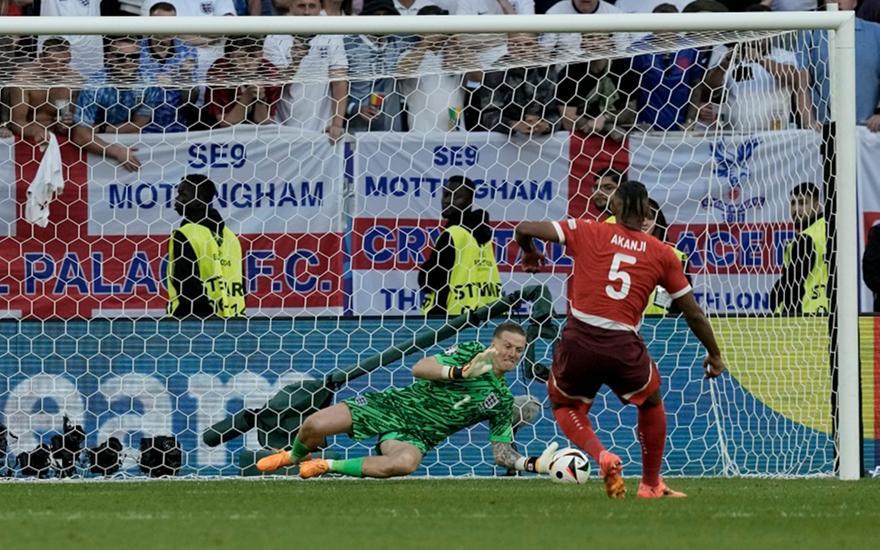 Με πρωταγωνιστή τον Πίκφορντ που έπιασε το πέναλτι του Ακάντζι, η Αγγλία λύγισε στα πέναλτι (5-4) την Ελβετία (1-1 καν. διάρκεια, παράταση) και έστειλε τα «τρία λιοντάρια» στα ημιτελικά του Euro 2024.