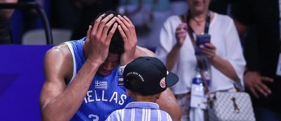 Λίγα λεπτά μετά το τελευταίο σφύριγμα των διαιτητών και αφού πήρε τα παιδιά του αγκαλιά για να τα φέρει στο γήπεδο, ο Γιάννης Αντετοκούνμπο απομακρύνθηκε από τους συμπαίκτες του, έκατσε σε ένα κάθισμα και ξέσπασε σε κλάματα με τον έναν εκ των γιων του να είναι μπροστά του κρατώντας ένα εισιτήριο για το Παρίσι.