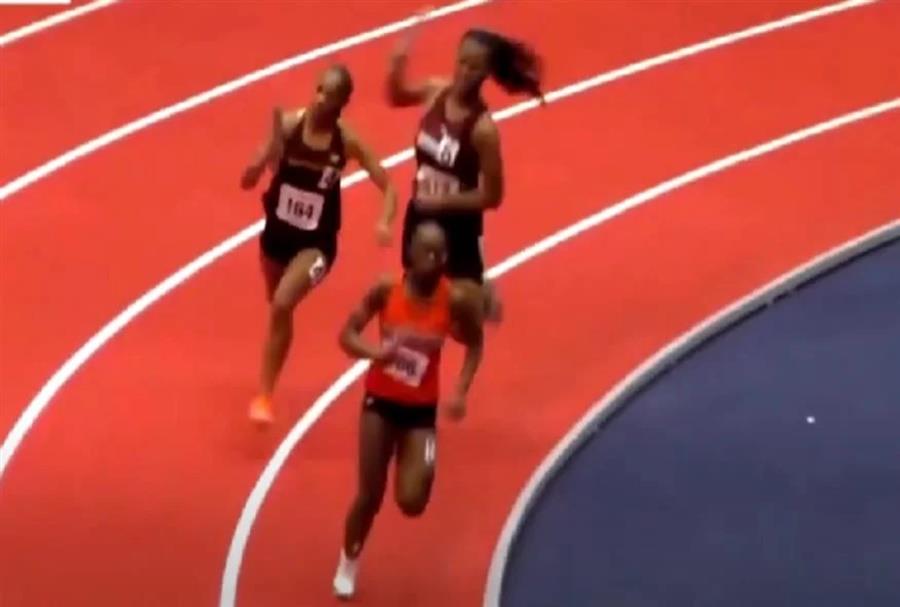 Στο βίντεο που μεταδόθηκε από τοπικά κανάλια, φαίνεται η Κέιλιν Τάκερ από το λύκειο Brookvile να προσπαθεί να μπει στην εσωτερική όταν μια άλλη δρομέας από το λύκειο IC Norcom τη χτύπησε με τη σκυτάλη στο κεφάλι.