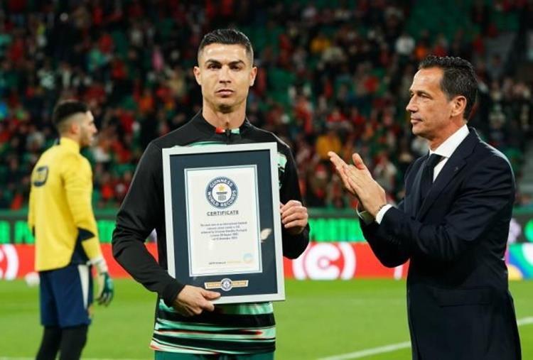Συγκεκριμένα, ο Πορτογάλος σούπερ σταρ πριν την αναμέτρηση της Πορτογαλίας με την Δανία, παρέλαβε το βραβείο των ρεκόρ Γκίνες για τις περισσότερες νίκες με το αντιπροσωπευτικό συγκρότημα της πατρίδας του, μετρώντας 132 θετικά αποτελέσματα.