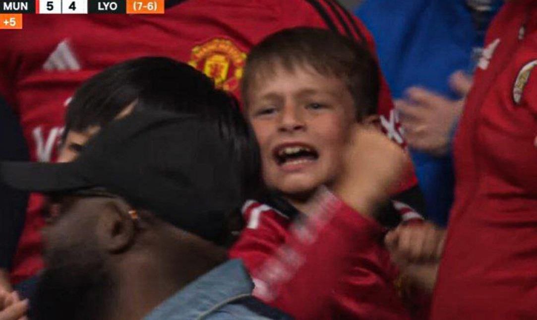 Όσο το ματς ήταν 4-2 υπέρ της Λιόν, η κάμερα είχε εστιάσει σε έναν πιτσιρικά που δεν μπορούσε να συγκρατήσει τα δάκρυά του καθώς έβλεπε την ομάδα του να αποκλείεται.