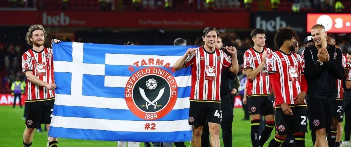 Sheffield United fans paraded a Greek flag around the pitch in tribute to the late George Baldock following their play-off win tonight.