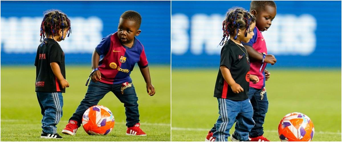 Images: Raphinha's son Gael and Lamine Yamal's brother Keyne playing during yesterday's title celebrations. pic.twitter.com/2UZdR6Ch3Z