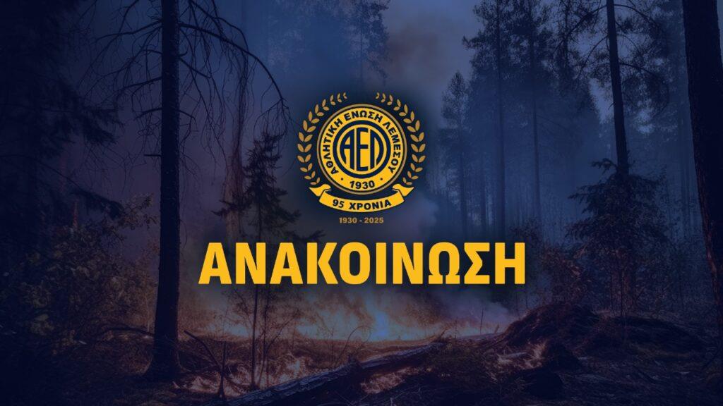 Το Διοικητικό Συμβούλιο της ΑΕΛ εκφράζει την ειλικρινή του θλίψη και τη βαθιά συμπαράσταση προς όλους τους συνανθρώπους μας που έχουν πληγεί από τις καταστροφικές πυρκαγιές που μαίνονται τα τελευταία 24ωρα στην Κύπρο. Πρόκειται για μια εθνική τραγωδία με σοβαρές ανθρώπινες, περιβαλλοντικές και κοινωνικές συνέπειες, η οποία απαιτεί συλλογική δράση και έμπρακτη αλληλεγγύη.