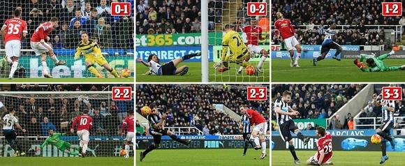 Νιούκαστλ - Μάντσεστερ Γιουνάιτεντ 3-3 (42' Βαϊνάλντουμ, 67' πέν. Μίτροβιτς, 90' Ντάμετ / 9' πέν. και 79' Ρούνεϊ, 38' Λίνγκαρντ)