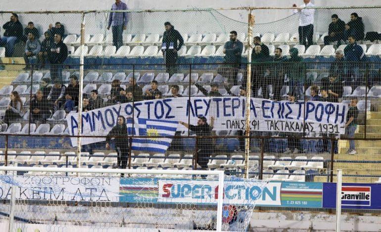 Σε ανακοίνωση της η Ανόρθωση εκφράζει ευχαριστίες στον κόσμο του Ολυμπιακού για το πανό της Αμμοχώστου που αναρτήθηκε στον μεταξύ των δύο ομάδων αγώνα και τονίζει το γεγονός πως οι φίλοι του "Τακτακαλά" τραγούδησαν μαζί με τους οπαδούς της Ανόρθωσης το "Χώμα ου περπάτησα"
