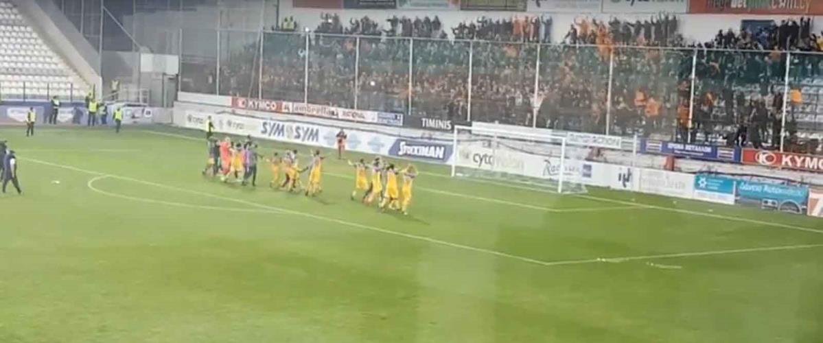 Οι οπαδοί των «γαλαζοκιτρίνων» παρέμειναν στο πέταλο που φιλοξενήθηκαν στο «Αντώνης Παπαδόπουλος» με το τελικό σφύριγμα για τα καθιερωμένα «όλε» του νικητή.