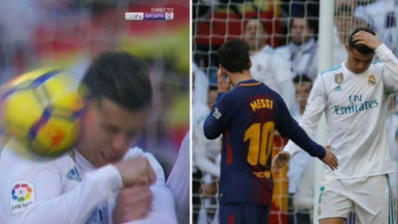 Μια φάση με δέκα χρυσές μπάλες στο Bernabeu, όταν ο Μέσι έστειλε την μπάλα στο τείχος και το πρόσωπο του Κριστιάνο. Ο Αργεντινός πήγε αμέσως, όπως φαίνεται στη photo να ζητήσει συγγνώμη από τον Πορτογάλο, στον οποίο όλα πήγαν ανάποδα...
