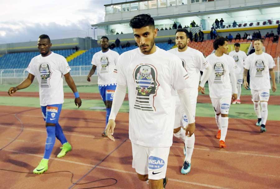 Μήνυμα υπέρ του νόμιμου στοιχηματισμού έστειλαν οι ποδοσφαιριστές Δόξας και Ανόρθωσης κατά την είσοδο τους στον αγωνιστικό χώρο του Μακαρείου.